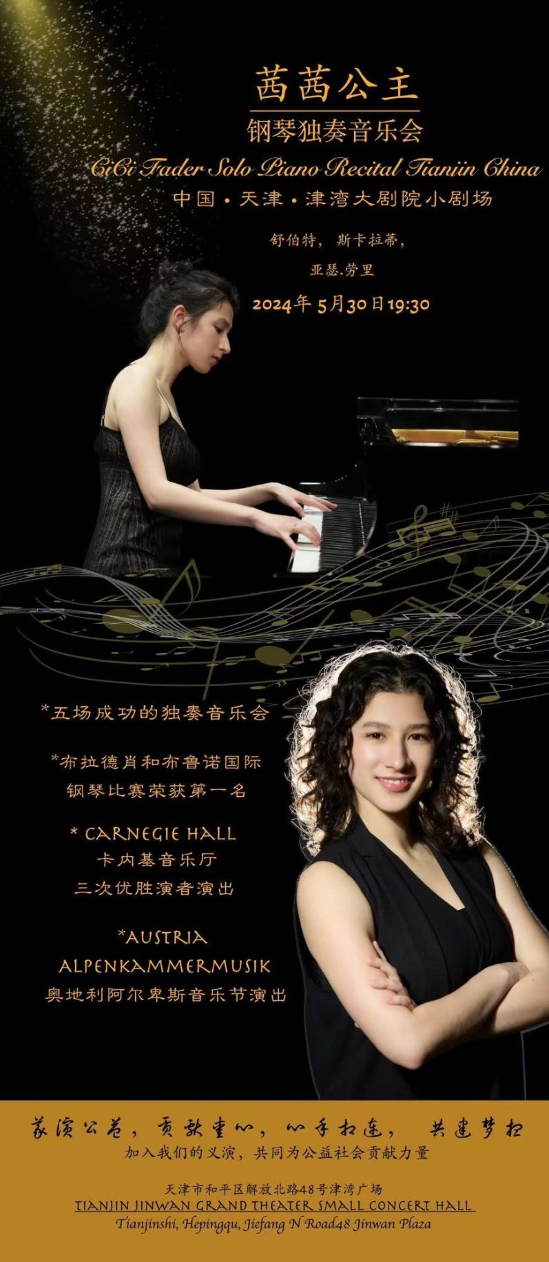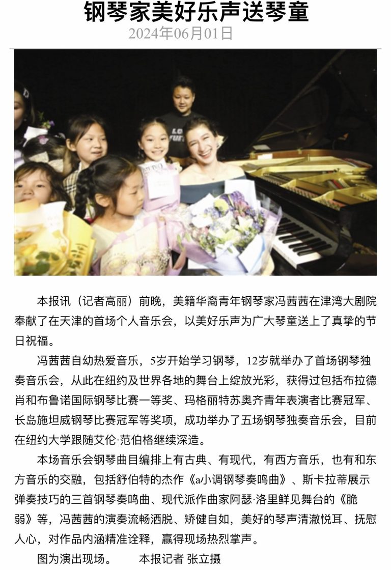 (Reporter Gao Min) Last night, young Chinese-American pianist CiCi Fader gave her first solo recital in Tianjin at the Binhai Grand Theater, offering beautiful music as a Children’s Day gift to many young piano students.
